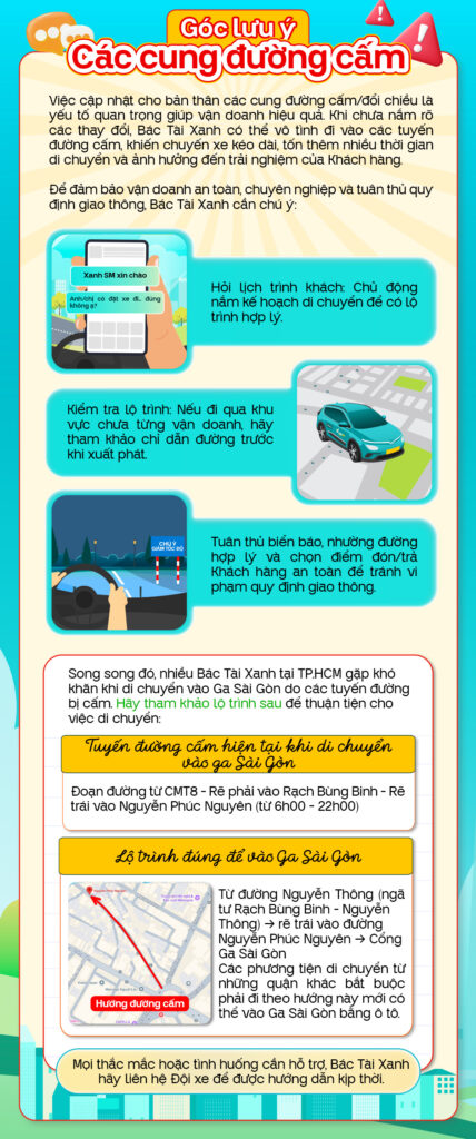 Bản tin vận doanh ngày 07/04 gửi đến câu chuyện “Bác Tài Xanh Chuẩn 5 sao” cùng những lưu ý quan trọng về các cung đường cấm, giúp Bác Tài Xanh chủ động lên lộ trình di chuyển hợp lý, đảm bảo vận doanh an toàn, chuyển nghiệp và tuân thủ quy định giao thông.