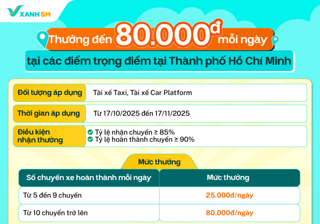 Bác tài thân mến, Xanh SM mang đến cơ hội vàng gia tăng thu nhập cho Bác tài đây!!! Bác tài chỉ cần thuộc lòng và chăm chỉ vận doanh các địa điểm sau để có cơ hội ôm trọn tiền thưởng đến 80.000đ/ngày nhé! 👉 Hãy mở ứng dụng và vận doanh ngay thôi! […]