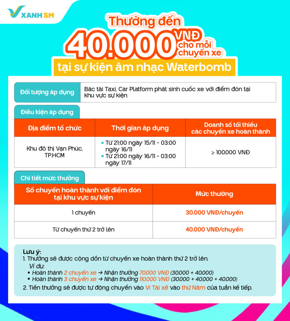 Bác Tài Xanh thân mến, Cuối tuần này, không khí tại TP.HCM sẽ “nóng” hơn bao giờ hết với lễ hội âm nhạc Waterbomb 2025! Đây cũng là cơ hội tuyệt vời để Bác Tài Xanh tăng doanh thu, phục vụ khách hàng tham dự sự kiện và nhận ngay thưởng nóng 40.000đ/chuyến xe tại […]